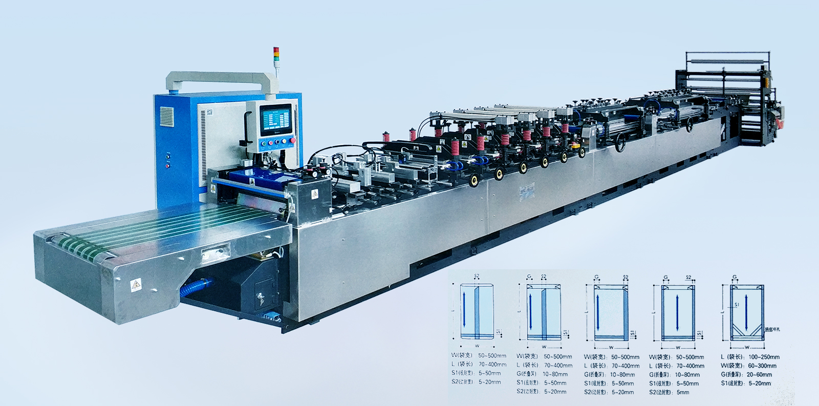 YSZD-400B Ⅱ中封、三邊封、四邊封高速全自動制袋機 YSZD-300/400/500ZF中封、側(cè)封、四邊封高速全自動制袋機 YSZD-500ZF中封、側(cè)封、四邊封高速全自動制袋機 YSZD-500/600/700/800/1000H三邊封高速全自動制袋機 YSZD-600C無接縫站立袋三邊封、站立袋高速全自動制袋機 YSZD-500HK三邊封、站立袋、拉鏈袋、無接縫站立拉鏈袋、儲料架高速全自動制袋機 YSZD-600HB三邊封、站立袋、拉鏈袋高速全自動制袋機 YSZD-600HK三邊封、站立袋、拉鏈袋、無接縫站立拉鏈袋高速全自動制袋機 YSZD-600HK Ⅰ上下圖案跟蹤三邊封、站立袋、拉鏈袋、無接縫站立拉鏈袋高速全自動制袋機 YSZD-600HK Ⅱ CCD視覺定位裁切三邊封、站立袋、拉鏈袋、無接縫站立拉鏈袋高速全自動制袋機 YSZD-800HK三邊封、站立袋、拉鏈袋、無接縫站立拉鏈袋高速全自動制袋機